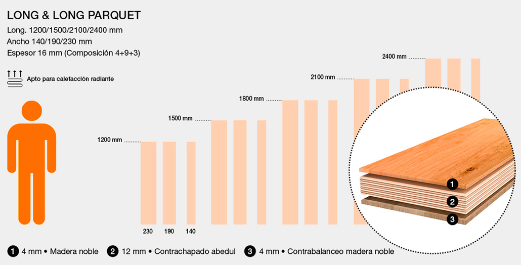 dimensiones, apropiadas para la fabricación de los suelos LONG & LONG.
